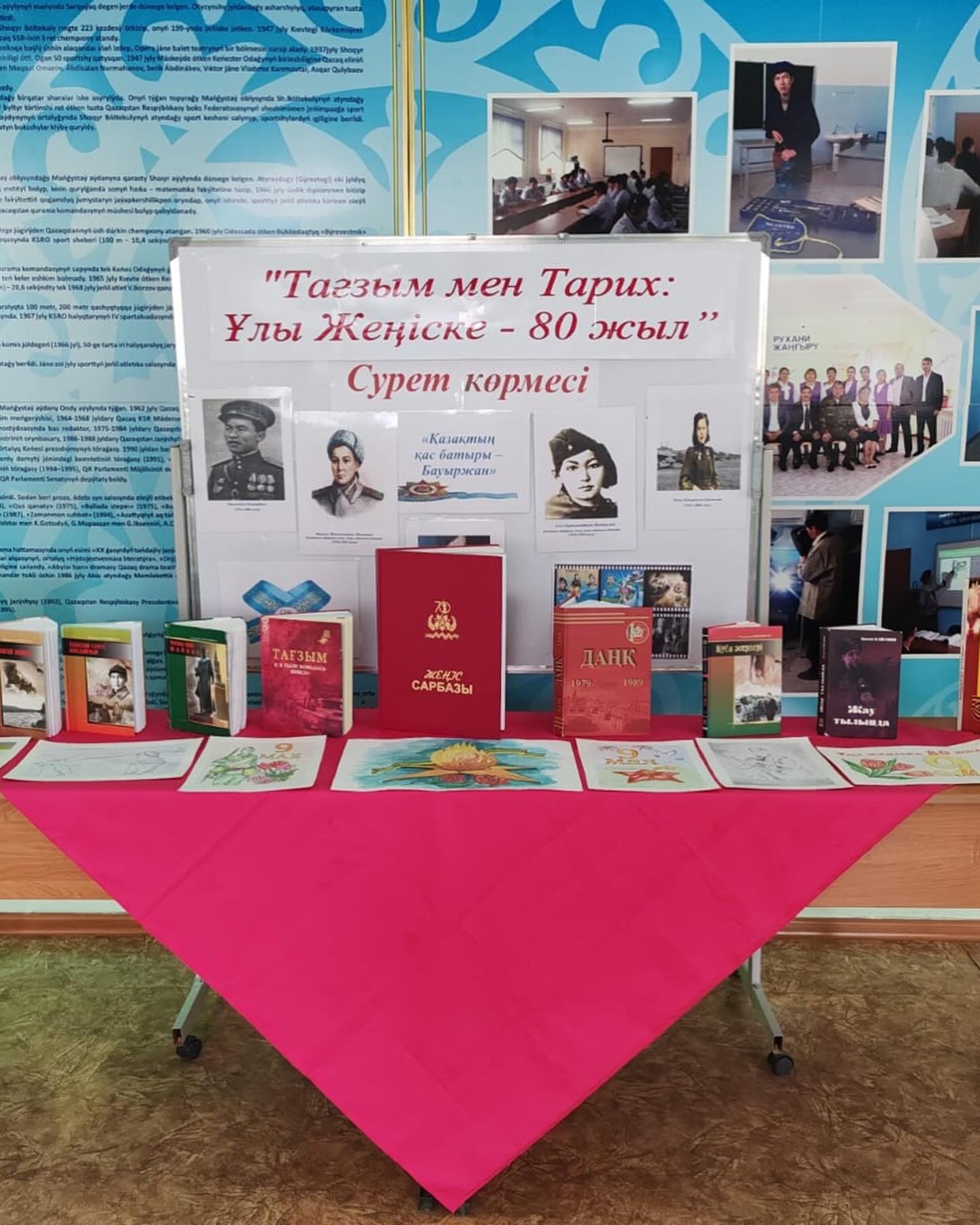Колледжде оқытушы А.Аманиязова ҰОС Жеңістің 80 жылдығына «Тағылым мен Тарих: Ұлы Жеңіске-80 жыл тақырыбымен сурет көрмесін ұйымдастырды.Көрмеге студенттердің тақырыпқа сай салынған суреттері қойылды.#біртұтастәрбие #жеңіскүні