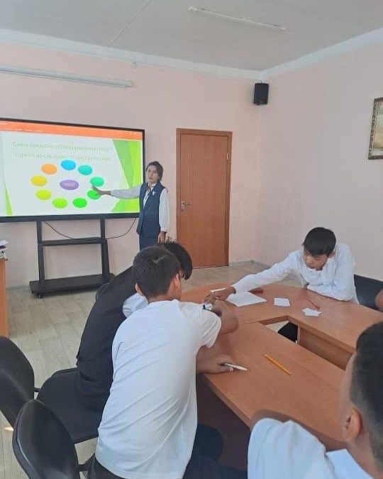 14мамыр күні психолог Г.Ермұханова Д-04-24 тобына тренинг өткізді.Мақсаты- отбасыны құрметтеуге ,ата-анасын сыйлауға,кішіге қамқор,тату болуға тәрбиелеу.Тренинг барысында студенттер есімдер аллитерациясы мен тілек ағашы ,мен отбасымды мақтан етемін бөлімдері бойынша тапсырмаларды орындады.#біртұтастәрбе #отбасыкүні
