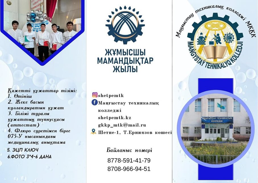 ХабарландыруТалапкер-2025… 7 месяцев тому назад01 mins Талапкер-2025 Жастарды Маңғыстау техникалық колледжіне оқуға шақырамыз! Навигация по записям Предыдущая: ХАБАРЛАНДЫРУ!…Далее: Талапкер-2025!…