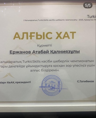 Ағымдағы жылдың 29 желтоқсанында «Жұмысшы мамандықтар жылын» қорытындылауға арналған “BEST of ТжКБ: Үздіктер салтанатында” “Маңғыстау техникалық колледжі” «Кәсіптік білімнің Қарашаңырағы» номинациясын жеңіп алды. 🏆🏆🏆Колледжімізден басшымыз А.Ержанов пен басшының өндірістік оқу орынбасары Т.Бусаханов алғыс хаттармен марапатталды.💐💐#маңғыстацтехникалықколледж#жұмысшымамандықтаржылы2025 #алғысхатмерейіңдіөсіреді❤️🌹